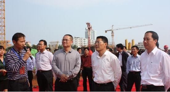 11月23日下午,湛江市委副書記、代市長王中丙,副市長陳岸明在徐聞縣委書記鐘力、縣長林海武的陪同下,視察了安糧·藍(lán)海城市廣場。