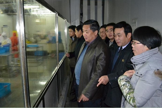 楊成鎖副局長一行實(shí)地參觀了安慶安糧的廠容廠貌以及水產(chǎn)加工車間馬哈魚生產(chǎn)線。