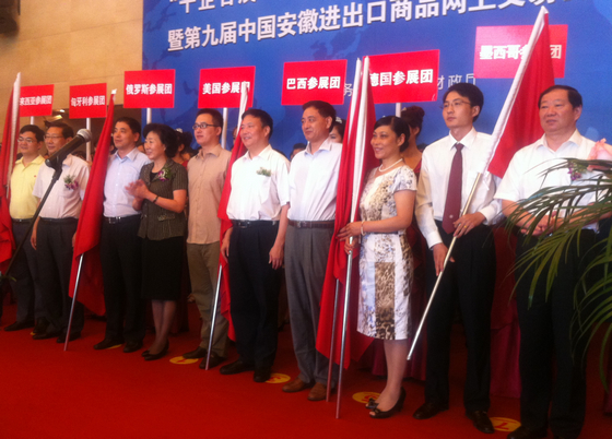 8月21日上午,“千企百展”——安徽產品走世界活動啟動儀式暨第九屆中國安徽進出口商品網上交易會開幕式在合肥翡翠湖迎賓館隆重舉行,省政府花建慧副省長、省商務廳方西屏廳長等領導出席了開幕式。安糧國際作為重點參展企業代表,組成了8人代表團參加了開幕式并接受了花建慧副省長授旗。