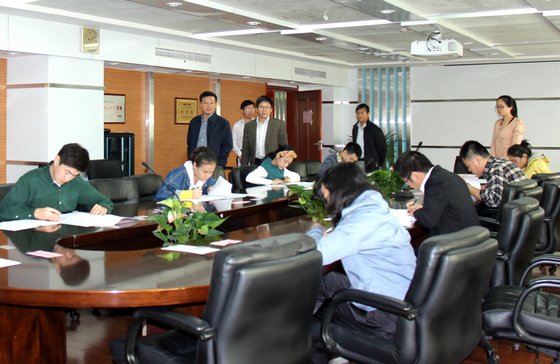 10月18日上午, 2013年度單證崗位員工專業(yè)技能考核(考試)筆試在公司舉行,陳焱華董事長,安糧控股副總裁方宗友、董事會秘書潘冬生等領(lǐng)導親臨各考場巡考。
