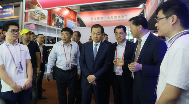 4月16日,第121屆廣交會第一期進入第二個展出日。上午9點半,張曙光副省長在省政府副秘書長趙振華、省商務廳廳長張箭、省出入境檢驗檢疫局局長呂小斌等陪同下,視察了公司電子消費品及信息產品品牌展展位。安糧控股副總裁曹訓立接待了張副省長一行。