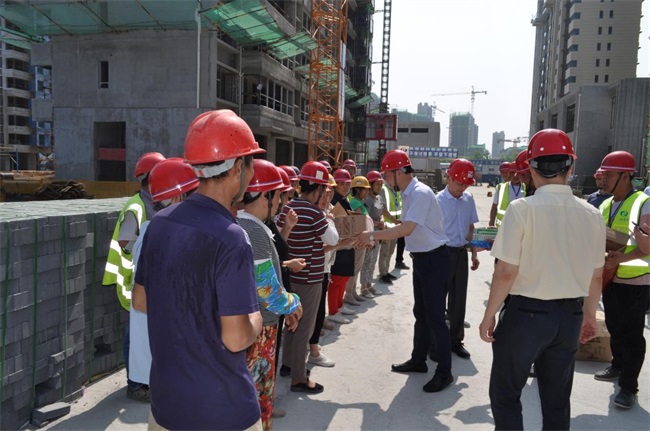 時至大暑,日盛三伏。23日上午9點,曹訓立書記一行來到由總承包分公司承建的濱湖碧桂公館項目部,慰問鏖戰酷夏的一線職工,為他們送去防暑降溫慰問品。曹訓立書記與總承包分公司及項目主要負責人進行了細致交流,叮囑公司和項目部要做好防暑降溫工作,合理安排施工時段,盡量避開高溫天氣,注意勞逸結合,給一線員工創造良好的工作環境,確保員工身體健康和施工安全,保障各項目工作有條不紊地開展。