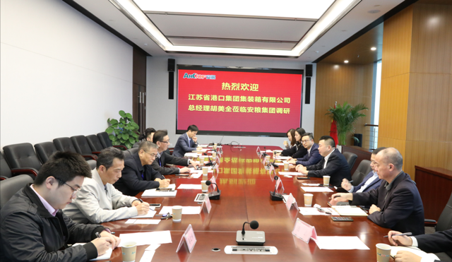 11月4日,江蘇省港口集團集裝箱有限公司總經理、太倉港港務集團董事長胡美全一行到安糧集團調研。安糧集團黨委委員、副總裁周洪,安糧控股財務總監張來往及相關部門負責人參加調研座談會。