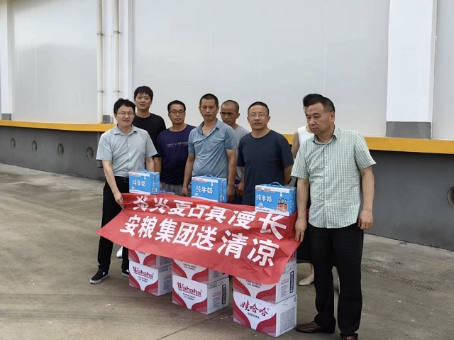 入夏以來,安徽多地開啟高溫模式,安糧實(shí)業(yè)于7-8月開展了“夏日送清涼”活動(dòng),慰問下屬工廠奮斗在一線的員工們,將防暑降溫物資送到基層員工手中,為高溫酷暑下堅(jiān)守生產(chǎn)一線的員工撐起“遮陽傘”。