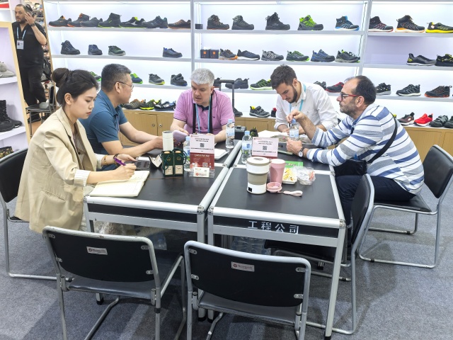 鞋類展區以創新科技,時尚出行為主題,集中呈現了運動休閑、戶外功能等多類產品。主打輕便安全鞋采用先進的減震與防護技術,兼具輕量化與高強度特性,獲得歐美客戶的高度認可,開展首日就迎來大量客戶詢價洽談;使用環保耐磨材料制成的雪地靴,憑借出色的保暖與防滑優勢,成為北歐市場的潛力爆品。