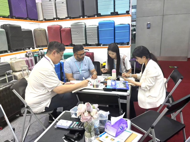 箱包展區推出70余款不同材質和設計的產品,如超輕材質PP拉桿箱、ABS拉桿箱、旅行布箱等。其中PP拉桿箱因其高性價比,受到歐洲、中東、南美客商青睞。參展期間,業務團隊根據客商反饋,及時調整展品布置,確保每日展出的箱包品類與陳列形式持續更新,大大提升了客戶體驗。